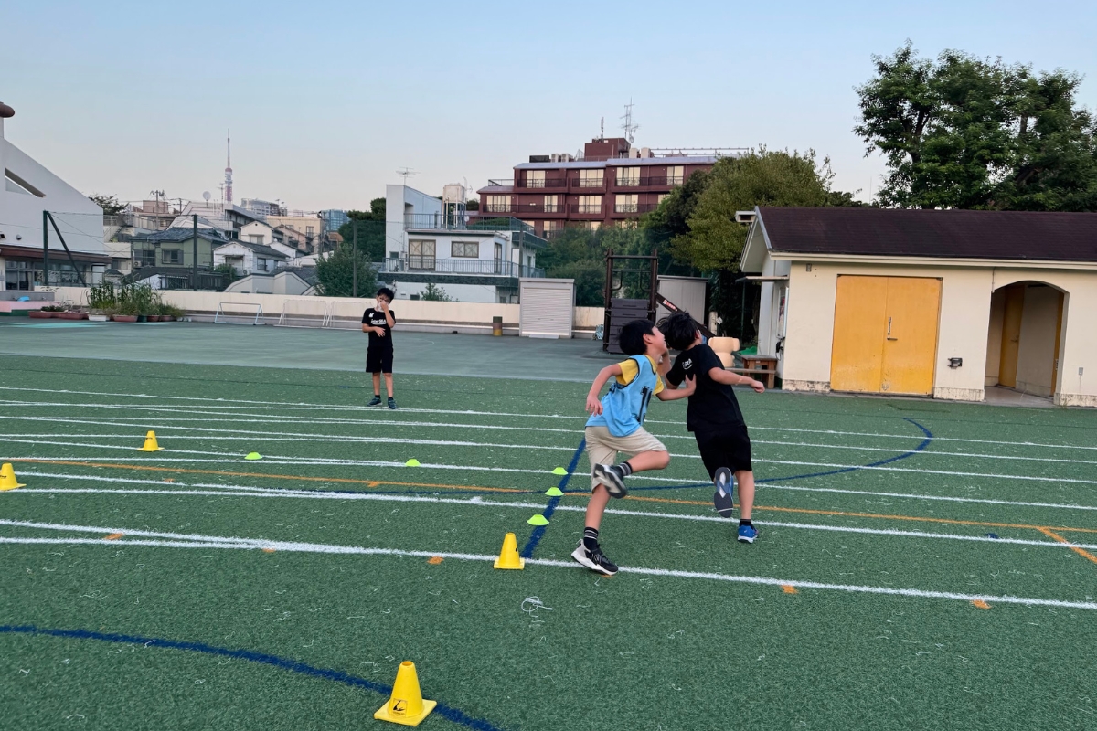 そうすることで、鬼をボールに見立て、そこから離れる動きを逃げては身に付け、