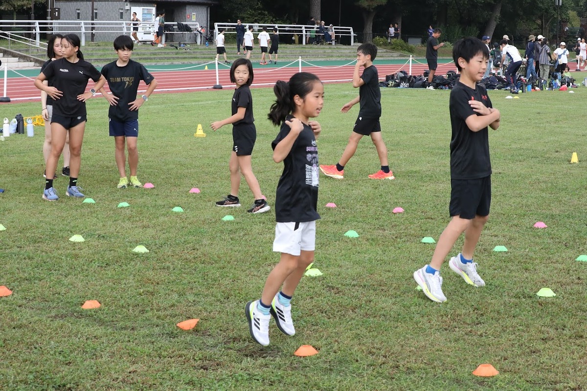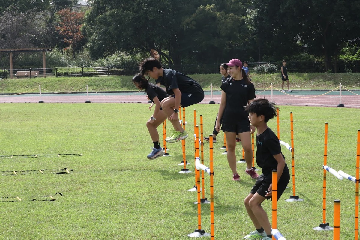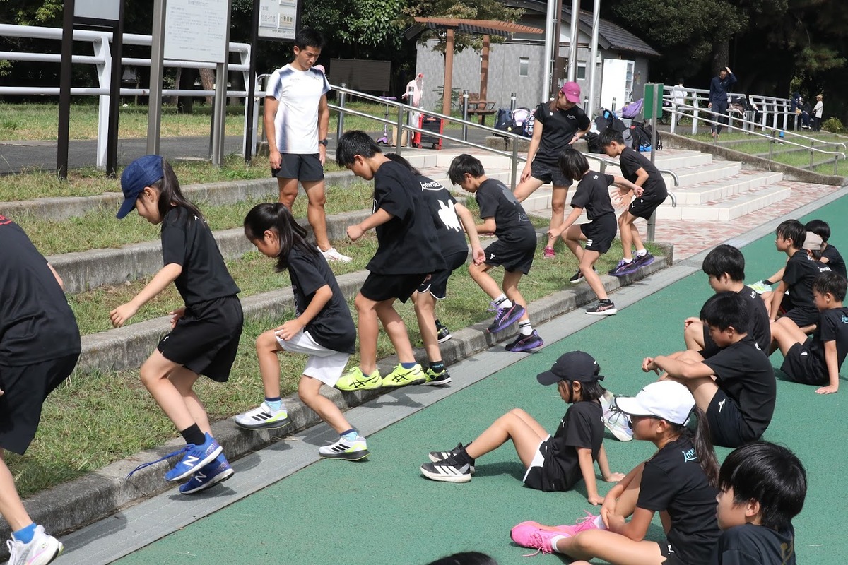 今回の練習会は下記の流れで進んでおり、今回はリレー練習を中心に置きながら、走幅跳やハードルのタータンの反発慣れができるように練習を行いました。